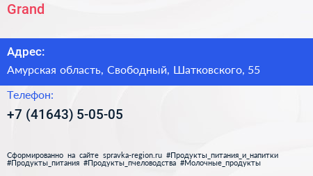 Grand по адресу Амурская область, Свободный, Шатковского, 55 в дальнейшем Организация, размещена в следующих категориях: