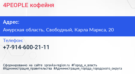 4PEOPLE, кофейня по адресу Амурская область, Свободный, Карла Маркса, 20 в дальнейшем Организация, размещена в следующих категориях: