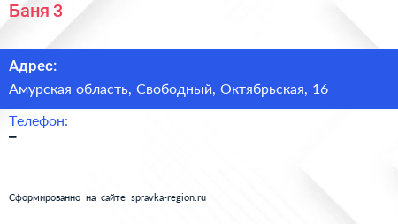 Баня №3 по адресу Амурская область, Свободный, Октябрьская, 16 в дальнейшем Организация, размещена в следующих категориях: