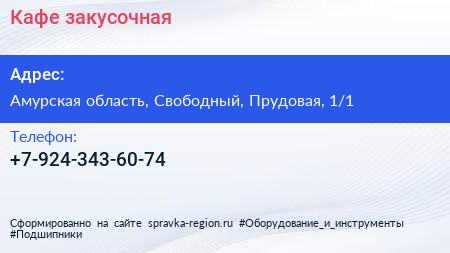 Кафе-закусочная по адресу Амурская область, Свободный, Прудовая, 1/1 в дальнейшем Организация, размещена в следующих категориях: