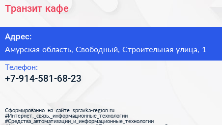 Транзит, кафе по адресу Амурская область, Свободный, Строительная улица, 1 в дальнейшем Организация, размещена в следующих категориях: