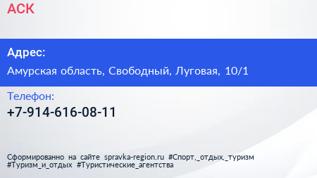 АСК по адресу Амурская область, Свободный, Луговая, 10/1 в дальнейшем Организация, размещена в следующих категориях: