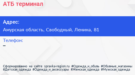 АТБ, терминал по адресу Амурская область, Свободный, Ленина, 81 в дальнейшем Организация, размещена в следующих категориях: