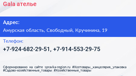 Gala, ателье по адресу Амурская область, Свободный, Кручинина, 19 в дальнейшем Организация, размещена в следующих категориях: