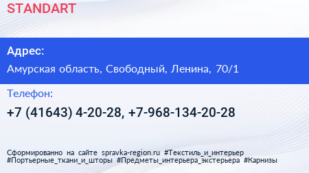 STANDART по адресу Амурская область, Свободный, Ленина, 70/1 в дальнейшем Организация, размещена в следующих категориях: