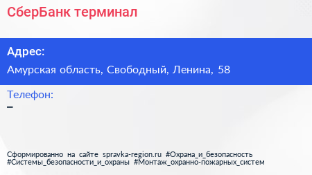 СберБанк, терминал по адресу Амурская область, Свободный, Ленина, 58 в дальнейшем Организация, размещена в следующих категориях: