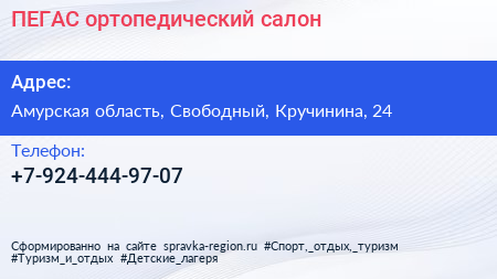 ПЕГАС, ортопедический салон по адресу Амурская область, Свободный, Кручинина, 24 в дальнейшем Организация, размещена в следующих категориях: