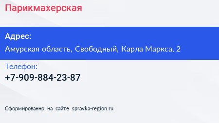 Парикмахерская по адресу Амурская область, Свободный, Карла Маркса, 2 в дальнейшем Организация, размещена в следующих категориях: