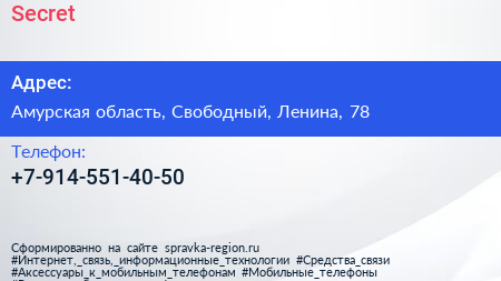 Secret по адресу Амурская область, Свободный, Ленина, 78 в дальнейшем Организация, размещена в следующих категориях: