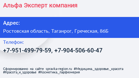 Альфа-Эксперт, компания по адресу Ростовская область, Таганрог, Греческая, 86Б в дальнейшем Организация, размещена в следующих категориях: