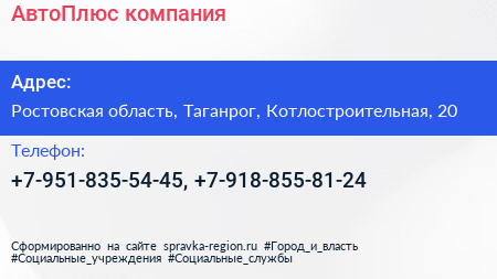 АвтоПлюс, компания по адресу Ростовская область, Таганрог, Котлостроительная, 20 в дальнейшем Организация, размещена в следующих категориях: