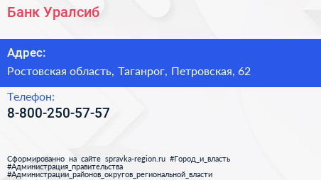 Банк Уралсиб по адресу Ростовская область, Таганрог, Петровская, 62 в дальнейшем Организация, размещена в следующих категориях: