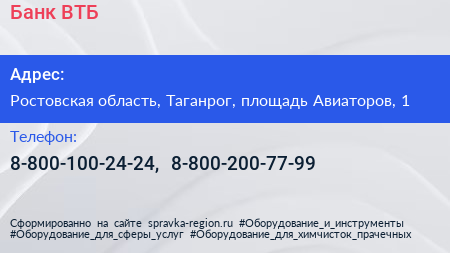 Банк ВТБ по адресу Ростовская область, Таганрог, площадь Авиаторов, 1 в дальнейшем Организация, размещена в следующих категориях: