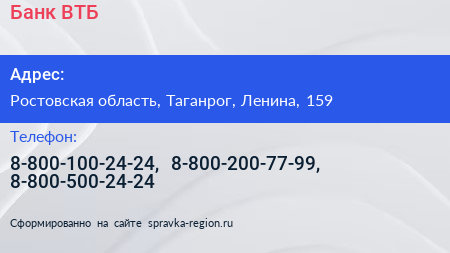 Банк ВТБ по адресу Ростовская область, Таганрог, Ленина, 159 в дальнейшем Организация, размещена в следующих категориях:
