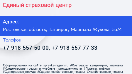 Единый страховой центр по адресу Ростовская область, Таганрог, Маршала Жукова, 5а/4 в дальнейшем Организация, размещена в следующих категориях: