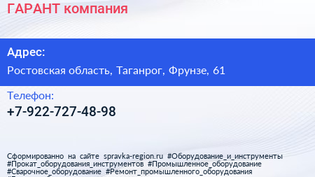 ГАРАНТ, компания по адресу Ростовская область, Таганрог, Фрунзе, 61 в дальнейшем Организация, размещена в следующих категориях: