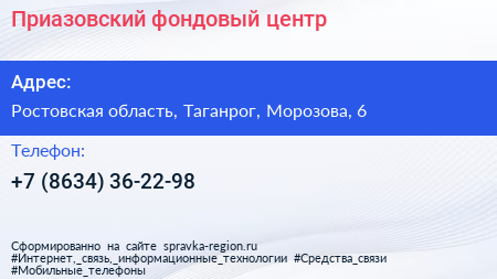Приазовский фондовый центр по адресу Ростовская область, Таганрог, Морозова, 6 в дальнейшем Организация, размещена в следующих категориях: