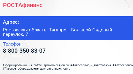 РОСТАфинанс по адресу Ростовская область, Таганрог, Большой Садовый переулок, 7 в дальнейшем Организация, размещена в следующих категориях: