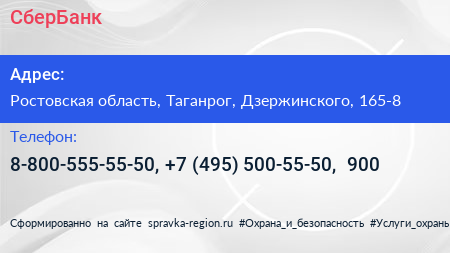 СберБанк по адресу Ростовская область, Таганрог, Дзержинского, 165-8 в дальнейшем Организация, размещена в следующих категориях: