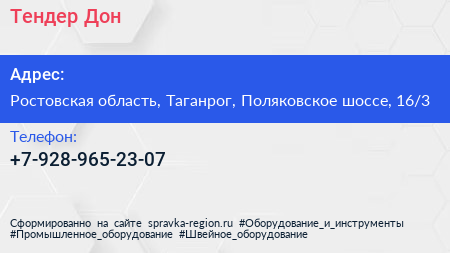 Тендер-Дон по адресу Ростовская область, Таганрог, Поляковское шоссе, 16/3 в дальнейшем Организация, размещена в следующих категориях:
