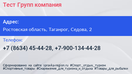 Тест Групп, компания по адресу Ростовская область, Таганрог, Седова, 2 в дальнейшем Организация, размещена в следующих категориях: