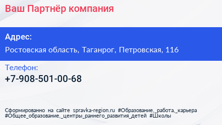 Ваш Партнёр, компания по адресу Ростовская область, Таганрог, Петровская, 116 в дальнейшем Организация, размещена в следующих категориях: