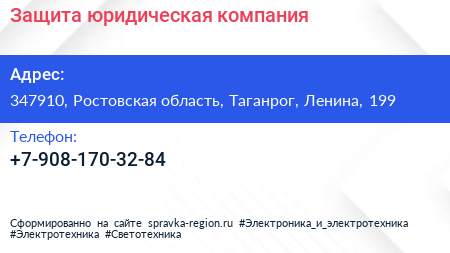 Защита, юридическая компания по адресу 347910, Ростовская область, Таганрог, Ленина, 199 в дальнейшем Организация, размещена в следующих категориях: