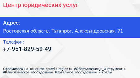 Центр юридических услуг по адресу Ростовская область, Таганрог, Александровская, 71 в дальнейшем Организация, размещена в следующих категориях: