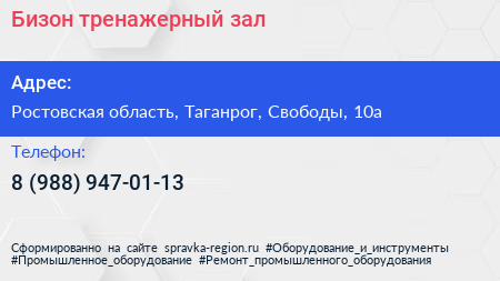 Бизон, тренажерный зал по адресу Ростовская область, Таганрог, Свободы, 10а в дальнейшем Организация, размещена в следующих категориях: