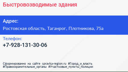 Быстровозводимые здания по адресу Ростовская область, Таганрог, Плотникова, 75а в дальнейшем Организация, размещена в следующих категориях: