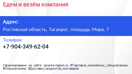 Едем и везём, компания по адресу Ростовская область, Таганрог, площадь Мира, 7 в дальнейшем Организация, размещена в следующих категориях: