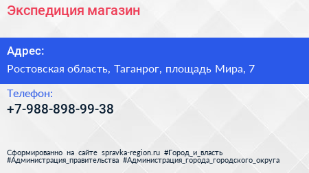 Экспедиция, магазин по адресу Ростовская область, Таганрог, площадь Мира, 7 в дальнейшем Организация, размещена в следующих категориях: