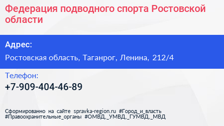 Федерация подводного спорта Ростовской области по адресу Ростовская область, Таганрог, Ленина, 212/4 в дальнейшем Организация, размещена в следующих категориях: