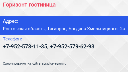 Горизонт, гостиница по адресу Ростовская область, Таганрог, Богдана Хмельницкого, 2а в дальнейшем Организация, размещена в следующих категориях: