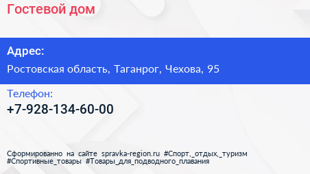 Гостевой дом по адресу Ростовская область, Таганрог, Чехова, 95 в дальнейшем Организация, размещена в следующих категориях: