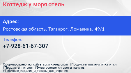 Коттедж у моря, отель по адресу Ростовская область, Таганрог, Ломакина, 49/1 в дальнейшем Организация, размещена в следующих категориях: