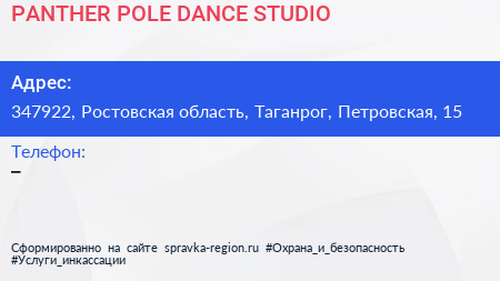 PANTHER POLE DANCE STUDIO по адресу 347922, Ростовская область, Таганрог, Петровская, 15 в дальнейшем Организация, размещена в следующих категориях: