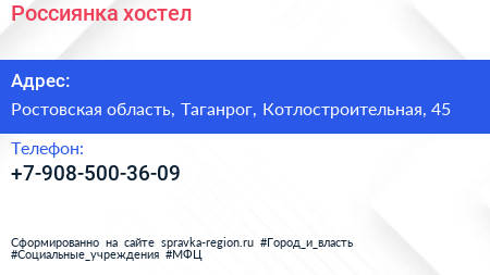 Россиянка, хостел по адресу Ростовская область, Таганрог, Котлостроительная, 45 в дальнейшем Организация, размещена в следующих категориях: