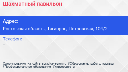 Шахматный павильон по адресу Ростовская область, Таганрог, Петровская, 104/2 в дальнейшем Организация, размещена в следующих категориях: