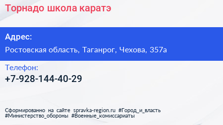 Торнадо, школа каратэ по адресу Ростовская область, Таганрог, Чехова, 357а в дальнейшем Организация, размещена в следующих категориях: