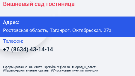 Вишневый сад, гостиница по адресу Ростовская область, Таганрог, Октябрьская, 27а в дальнейшем Организация, размещена в следующих категориях: