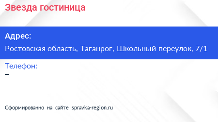 Звезда, гостиница по адресу Ростовская область, Таганрог, Школьный переулок, 7/1 в дальнейшем Организация, размещена в следующих категориях: