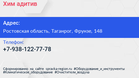 Хим-адитив по адресу Ростовская область, Таганрог, Фрунзе, 148 в дальнейшем Организация, размещена в следующих категориях: