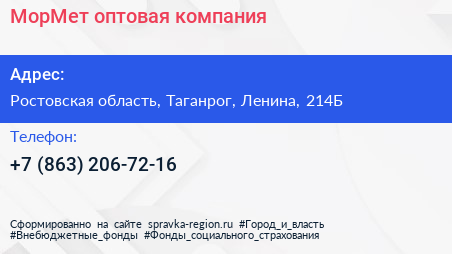 МорМет, оптовая компания по адресу Ростовская область, Таганрог, Ленина, 214Б в дальнейшем Организация, размещена в следующих категориях:
