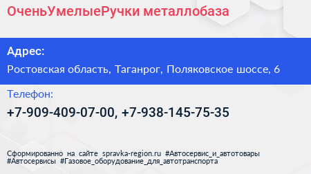 ОченьУмелыеРучки, металлобаза по адресу Ростовская область, Таганрог, Поляковское шоссе, 6 в дальнейшем Организация, размещена в следующих категориях: