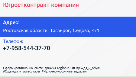 Югростконтракт, компания по адресу Ростовская область, Таганрог, Седова, 4/1 в дальнейшем Организация, размещена в следующих категориях: