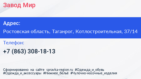 Завод Мир по адресу Ростовская область, Таганрог, Котлостроительная, 37/14 в дальнейшем Организация, размещена в следующих категориях: