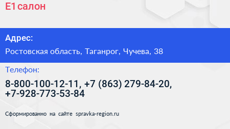 E1, салон по адресу Ростовская область, Таганрог, Чучева, 38 в дальнейшем Организация, размещена в следующих категориях: