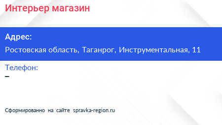 Интерьер, магазин по адресу Ростовская область, Таганрог, Инструментальная, 11 в дальнейшем Организация, размещена в следующих категориях: