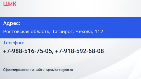 ШиК по адресу Ростовская область, Таганрог, Чехова, 112 в дальнейшем Организация, размещена в следующих категориях: